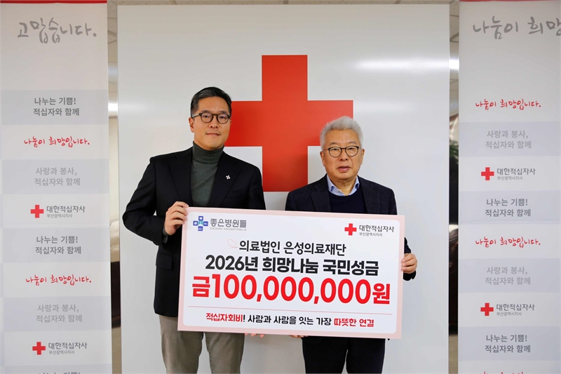 은성의료재단 좋은병원들(이사장 구자성)이 6일 대한적십자사 부산광역지사(회장 구정회)에 ‘2026년 희망나눔 국민성금’ 1억 원을 전달했다.